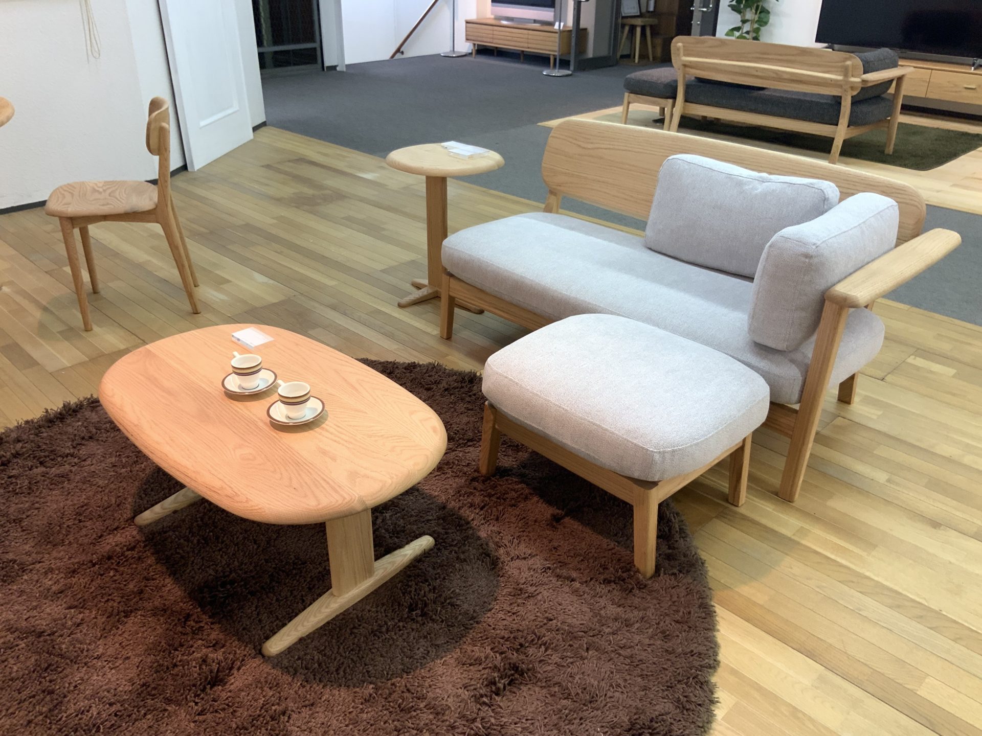 初のお披露目となったソファとオットマン、センターテーブル、サイドテーブル