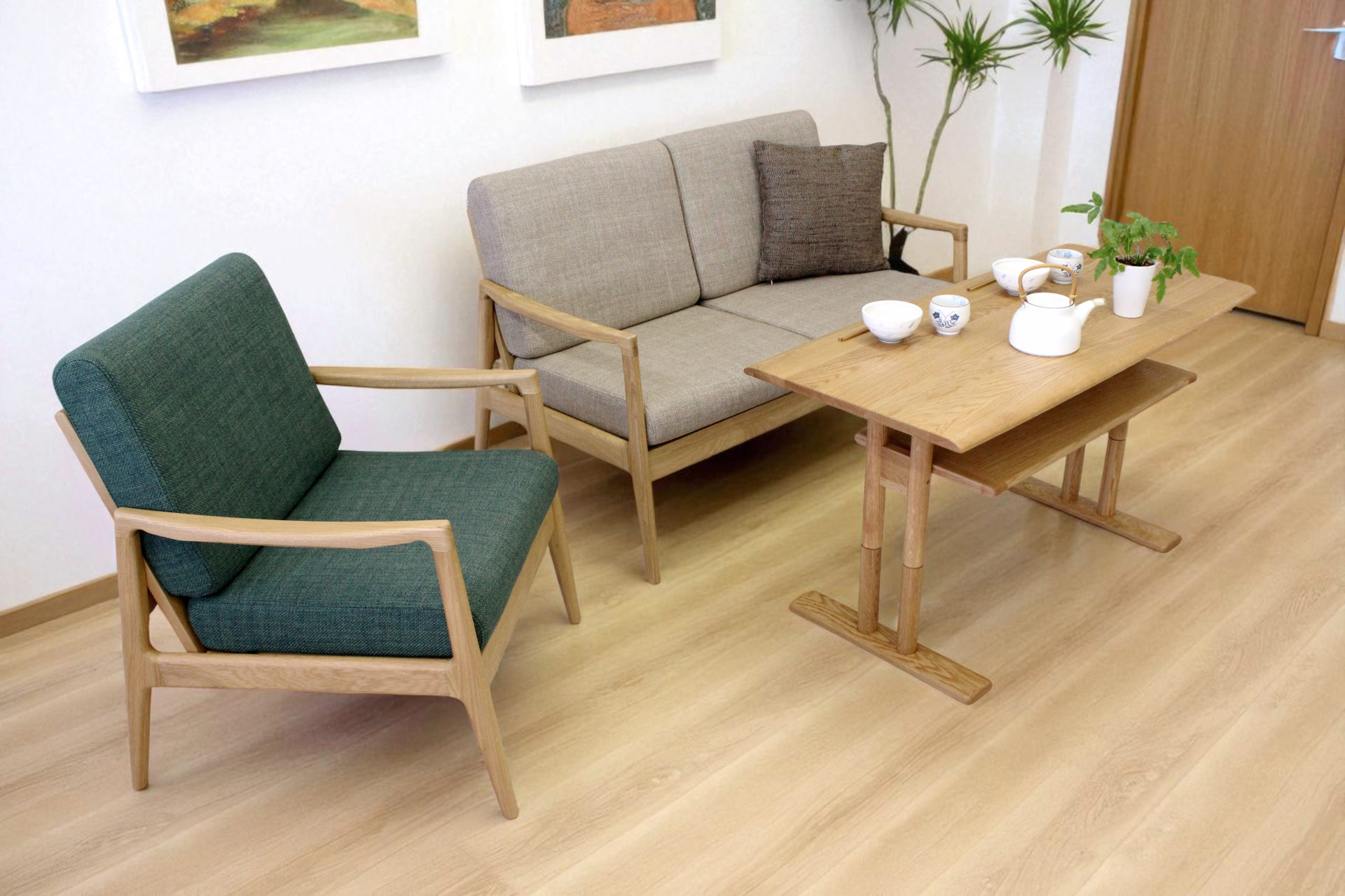 無垢のダイニングやリビング家具を中心に、久和屋の世界観をそのまま体感いただけます。